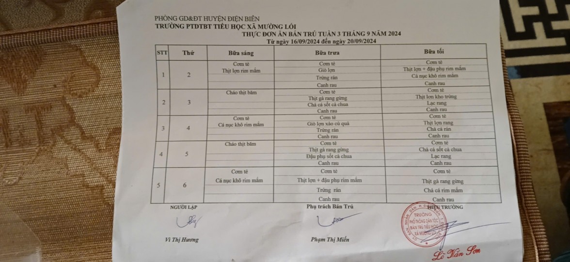 Thực đơn ăn bán trú tuần 1 tháng 9 năm 2024